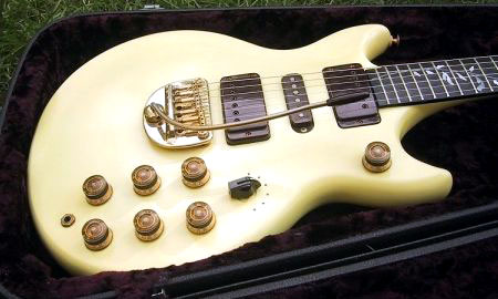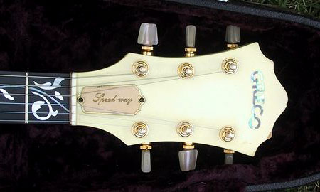 私の世代には、ゴダイゴの浅野氏がGOを抱えている姿が鮮明に記憶に残っており、個体の保護のような気持ちもあって手に入れました。木部の構成は塗り潰しカラーの為はっきりとしませんが、塗装のヒケやトレモロユニット用のキャビティーなどから僅かに、スルーネック構造であることが確認できます。PUセレクター部の仕様などから、一般的な量産型の仕様であることが予想できます。画像ではかなり白っぽくなっていますが、実際には経年変化によりクリームというか、レモン色に変色しています。この個体を手に入れて後、演奏可能な状態にするまでには紆余曲折がありました。途中で随分とヘコんだりもしていたのですが、狛江のグレコマニア様の数々のご助言と励まし、ご厚意を頂き、投稿できるところまで持っていくことができました。