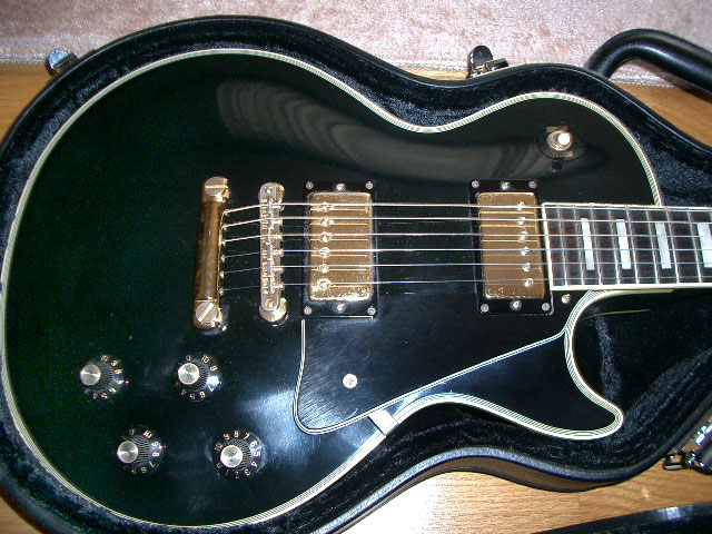 廉価モデルなので、よく見かけるかと思いますが投稿させて頂きました。特に改造、交換箇所もなくフルオリジナルの状態だと思います。写真ではわかりづらいのですが、指板はローズウッドにエボニーカラー仕上げがしてあります。このエボニー仕上げは使用すると、かなりのスピードで剥がれて行きます。そのため、このギターでもちょっとした経年変化が楽しめます。弾き心地はネックが薄く感じるため、手の小さい私にはかなり弾きやすいです。音は他のEGに比べると線が細くシャープな印象です。高音がかなきり声の様に聞こえ「1982 SCREAMIN'」の特性かなと感じています。(2004年5月) |