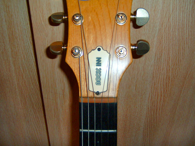私が持っているのは、(さっき押入れの奥底から発掘して参りました)GOlll型新星堂オリジナルのROCK INNモデルです。製造番号は「J79545×」で、見た目はHP掲載のGOlll型セン・トップとそっくりです。色はナチュラルで、ペグは当HPからすると、MH−900の様です。専用のケースもあります。購入当時の価格は忘れてしまいましたが、近所のイトーヨーカドー内の新星堂で購入したのは覚えてます。アンプはGuyatone ZIP300(色:ホワイト)とこれも年代物と思います。いずれも音色問題ないようでした。子供(小6)がギターを始めたら譲ろうかとも思っています。(撮影・文:mamoさん 2004年6月ご投稿) |