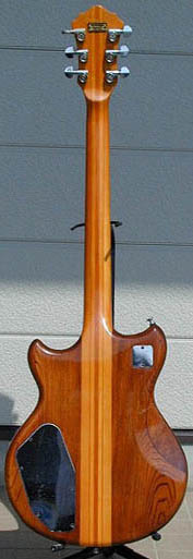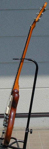 ペグにワッシャー交換と裏蓋1枚の欠品があるが、この点以外は標準的なGO1000前期型(1978年11月期出荷)。Vol.9カタログに写真掲載のギターよりも、こちらの方がずっと一般的に感じられる(違いはトグルSW周りのパーツカラー、アジャスター・カバー、ブリッジとテールピース間の距離)。メッキ部分の劣化とトップの引っ掻き傷はあるものの、アーチドトップで24フレットの仕様に満足しているそうだ。