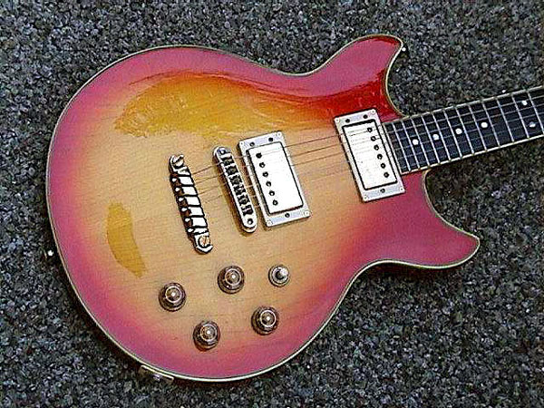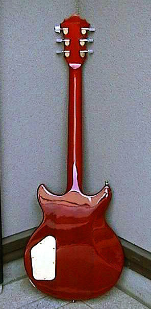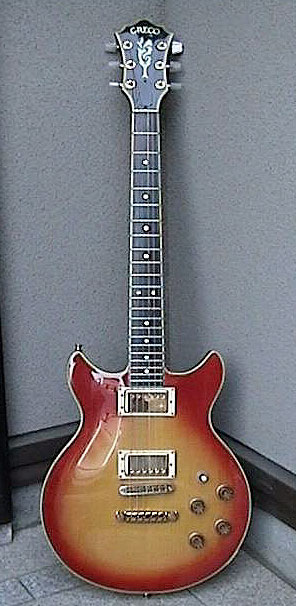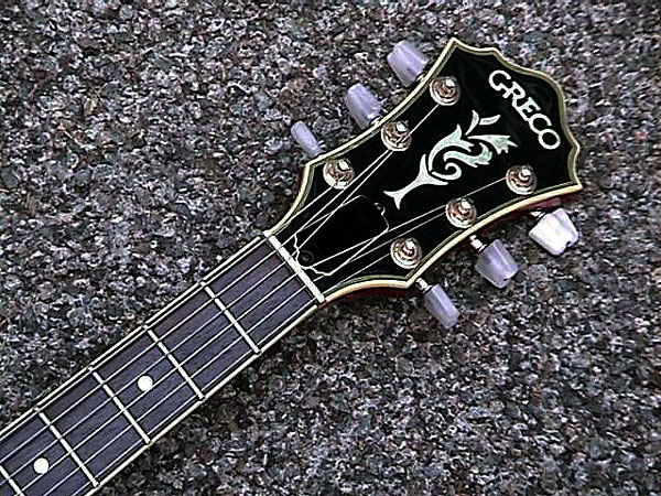 このギターは、ギター・グラフィックのグレコ特集に21番として収録された個体そのもの。ペグがパーロイド・ノブのMH−904に交換されており、アジャスタ・カバーが天地逆なのも当時のままだ。新品の時代からセカンド・ギターとして待機することの方が多く、それが幸い(?)して、傷みも少ないそうだ。あまりに使わないので手離すつもりだったが、本に掲載されたことでお宝に変ってしまったと言う。