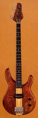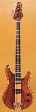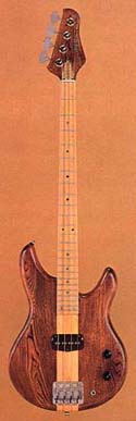 一部刊行物に紛らわしい記載があったが、各期間のGOBllについて再確認をしておきたい。左側が古く、右側に行くほど後期の生産品だ。一番左側と2番目についてはカメラ・アングルの違いで、やや形の差があるように見えるが実際の木部に目立った変化はない。ブリッジ/テールピースの搭載部品変更があっただけだ。一番左のものだけがGOBから継承したブリッジ/テンション・アジャスター別体型で、これは「選考期」に作られた絶対数の少ない製品。ごく短期間でクイックBブリッジが標準となる。左側2本は「初期型」のボディ・シェイプを持っている。3番目がハイ・フレットの演奏性を考慮して、カッタウエイを深く削り込んだ「中期型」。ボディ全体にユニークな印象を感じるシェイプだろう。4番目の「後期型」になると、ベース全体が設計し直されているのが分かる。この形が1980年代に入っても生産を続けられらている。ノブが垂直に並ばないこのタイプも、ごく普通に流通していたので勘違い無きようお願いしたい。この後、多くのバリエーションを持つ「時期型」プロトタイプが多数のエンドーサーに委ねられたが市販には到らなかった。