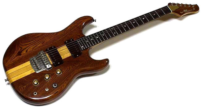 | 1978年9月期出荷のギターだが、一目見て分かるようにT.S.ビブラートを持たない特徴がある。この仕様についてもカタログ掲載があるので参考にしていただきたい。組み込まれているのはテンション・アジャスター・ブリッジというユニットだ。現物も数少なく、通巻番号のカタログに掲載がないので馴染みが薄いだろうか? 木部に目を向けるとボディはセン。ネックはメイプル/マホガニー、指板はローズウッドになっている。重量は弦を含んで4.1kgと計測した。 |