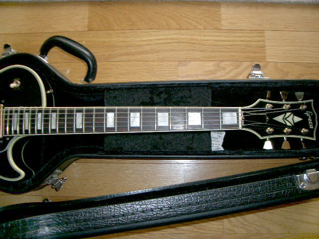 廉価モデルなので、よく見かけるかと思いますが投稿させて頂きました。特に改造、交換箇所もなくフルオリジナルの状態だと思います。写真ではわかりづらいのですが、指板はローズウッドにエボニーカラー仕上げがしてあります。このエボニー仕上げは使用すると、かなりのスピードで剥がれて行きます。そのため、このギターでもちょっとした経年変化が楽しめます。弾き心地はネックが薄く感じるため、手の小さい私にはかなり弾きやすいです。音は他のEGに比べると線が細くシャープな印象です。高音がかなきり声の様に聞こえ「1982 SCREAMIN'」の特性かなと感じています。(2004年5月) |