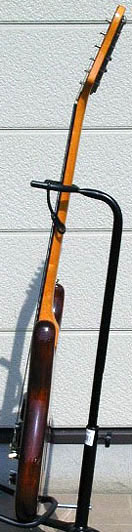 meolaさんが、またまたコレクションを増やした。今回はダークステインのGOll700だ。全体にコンディションは良いが、アームホルダーはノン・オリジナル。ストラップ・ピン移設の痕跡があるほか、指板にスキャロップ加工がある。meolaさんはスキャロップの指板が大好きだという。改造されたギターだが、良い新オーナーと巡り会ったと言えるだろう。