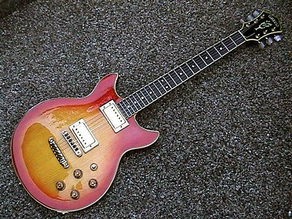 このギターは、ギター・グラフィックのグレコ特集に21番として収録された個体そのもの。ペグがパーロイド・ノブのMH−904に交換されており、アジャスタ・カバーが天地逆なのも当時のままだ。新品の時代からセカンド・ギターとして待機することの方が多く、それが幸い(?)して、傷みも少ないそうだ。あまりに使わないので手離すつもりだったが、本に掲載されたことでお宝に変ってしまったと言う。
