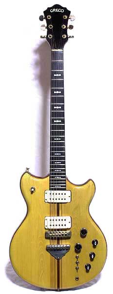 GOシリーズは1977年10月の楽器フェアでデビューした。しかし、多くの者が初めてそれを知ったのは専門誌同年12月号などの広告または記事だったはずだ。写真はまだプロトタイプのものしかなく、記事中にはGO−A1、A2、A3、A4(それぞれ後の700、900、1200、1400)という、楽器フェア用(?)の呼称で扱われた場合が数多く見られる。また、同時に広告も大々的に掲載されたのだが「スタジオ商品撮影」されたのは、フラッグシップたる「1400クラス(A4)」のプロトタイプだけだった様子だ。実際に製品の出荷が始まったのは1978年1月期(1977年12月21日から始まる)からのようで、A78より古い製造番号を持つ個体は未だ見たことがない。左のギターは「A78」で始まる製造番号を持ち、実際に1月中に販売された記録(保証書)が今も残っている。一般にGOシリーズは「前期型」と「後期型」に分類されるが、さらに段階的な進化が急速にあった。ご覧のブラックにフィニッシュされたヘッドフェイスは、GOシリーズが初登場したVol.9カタログ(1978年3月発行)の制作以前に廃止されているので、まさに「初期型」と呼べる特徴だろう。カタログ掲載の写真ではマッチングヘッドに変更されているが、左のギター同様にナットはオールブラス、アジャストカバーが黒いプラスチック製である他にも、ブリッジ/テールピース間の距離が左のギターに比べてやや長いなどの特徴がある。このHP(次項)に掲載した「1400BLK」が、ラミネートナット仕様でブリッジ/テールピース間が短いことから、初期仕様について変遷の激しさが理解できる。この「A78」では、EQノブの金属トップにH、M、Lと白い文字が入れられているのだが、これについては他の個体に確認できないので、オリジナルかどうかさえ不明の状態だ。基本的にはセン/マホガニー/センのラミネートボディ(薄板ありの5層)、メイプル/ウォルナットの7ピース・スピードウェイネックなのだが、多くの前期型1200と異なりウエストコンターが見られない。細部まで精査したら、一体どれほどの初期仕様があるのか、全く見当もつかない。最後に付け加えるが、金色メッキやトグルSWマウントラバー(アイボリーの方だけ)が大変に劣化しやすいのは、G0シリーズに共通の泣き所。重量は4.6Kg(弦・電池込み)だ。 |