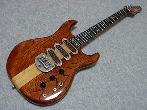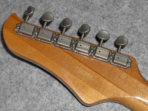 このギターは1986年、私が大学生になって稼いだ初めてのバイト代で購入しました。購入先の広島県呉市の楽器店(現在はなくなりました)では、このギターを玄関正面に飾っていました(つまり店頭のディスプレイ用・・・)。「売り物ですか?」と聞くと少し考えている様子。どうも売るつもりがなかったらしく、また値段も忘れてしまっていたようです。こんな経緯でこのギター、私にとっては「ワンオーナーもの」つまり新品購入ということになりました。 |