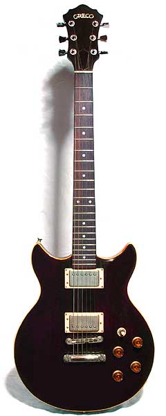 MXについては分からないことが非常に多い。生産台数が極端に少ないらしく、MRのように多くの固体を見ることがないのが原因だ。 MXは1978年のうちに展示発表があり、翌1979年中頃から市販が始まったモデルだ。 全体のコンセプトとしては、MRで評判が悪かったポイントを改良し後継機種にしようとしたのだろう。 MRを座って弾くと何とも落ち着きが悪く、人間工学デザインを導入した結果がこのボディ・シェイプらしい。開発にはかなりの力が注がれたようで、当時来日したジェフ・ベックにもプロトタイプが手渡された(ベックのオールド・ストラトのナットが割れてしまい、グレコのリペアマンが急遽呼ばれたとのことの話しがある)。ベックがMXのプロトを弾く姿はPlayer誌1979年1月号で確認できるが、その時点での仕様は TSビブラート付きのものとGOブリッジ(BR−GO)の2種だった。1979年5月のVol.10カタログにはMR・MXの双方が掲載され、MRはこれを最後にカタログから姿を消して行くことになる。左のギターは、ブリッジとテールピースが交換されてしまっているものの、市販型MXの最も初期の物である。サンプルと書いた根拠としては、このギターは木目の様子からVol.10カタログ、や広告の写真撮影に使用されたギターそのものと分かったからだ。製造番号をお知らせしたいところだが、ヘッド裏には2枚のシールが貼られており番号を確認できない。参考までにシールに記載された文字を紹介しておく。1枚は「For PR No.27」、他方は「固定資産 No.0033xx 株式会社○○商会」とはっきり読みとれる。この時期のグレコでは一部のモデルのバインディングに特徴がある。M(ミラージュ)1000のブルーメタリックに目立つ通り、真っ黄色に変色し塗装にヒビが入る材質が使われたのは残念なこと。グレコにしてはどうしたのかと気にかかる。また、3点支持のPUマウントが標準だと思われるが、Vol.13カタログのMX600では常識的なエスカッションにとってかわられた。MXのためにだけパーツを作り続けるほど、このモデルの需要がなかった証拠だろう。重量は3.7Kgとお手頃。この時期になると、グレコギターが一般的に重いとは言い切れないようだ。