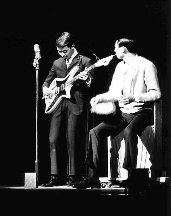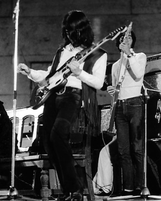 スタジオ・ミュージシャン時代の成毛 滋(左)とベースの江藤