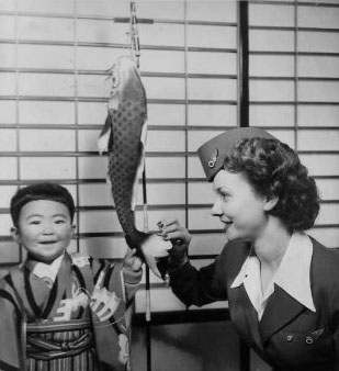 成毛(2歳 左)と進駐軍の女性。 当時成毛は進駐軍のアメリカ人と一緒に暮らし、