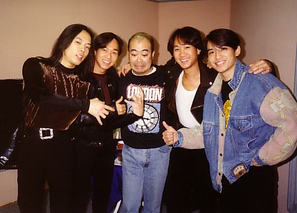 Vanilla Creamの成毛(G.Kb. 左)、松本幸三(Drs. 右上)、 シーユー・チェン(Vo.B.