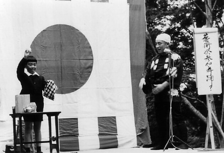 成毛 滋(左)の初ステージ。小学生の時から手品、落語でステージに立っていた。('57年11月)