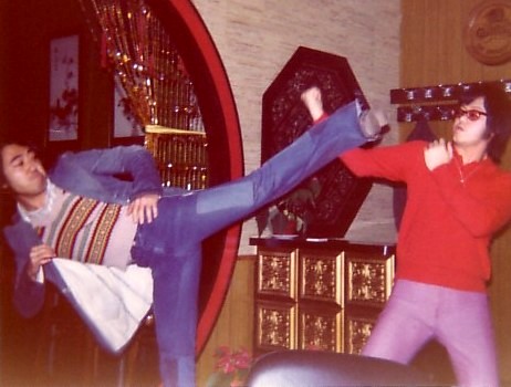 マネージャーの呉氏(右)は自称中国豹拳の高手で、成毛(左)は「功夫(コンフー)」も教わった