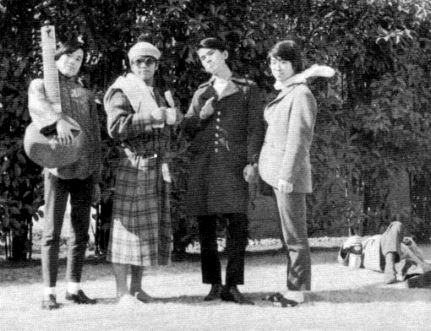 右下)。ギターを禁じられたフィンガーズ時代、 事務所に内緒で三人でディスコ等で演奏していた。('69年2月)