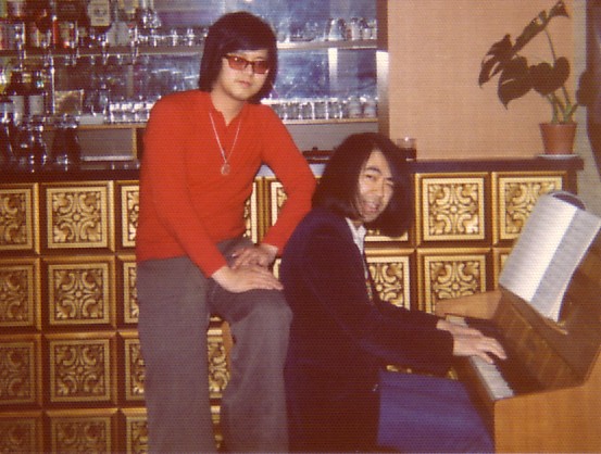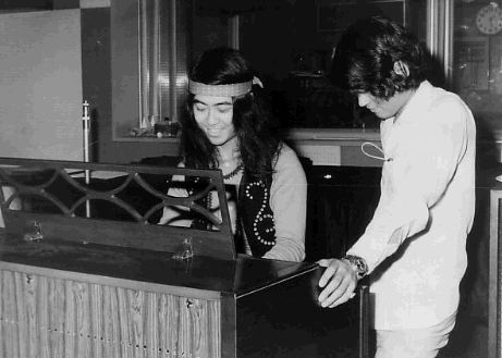 勲(右)。 当時譜面が読めないでスタジオ・ワークをやっていたのは成毛一人だった。('70年6月